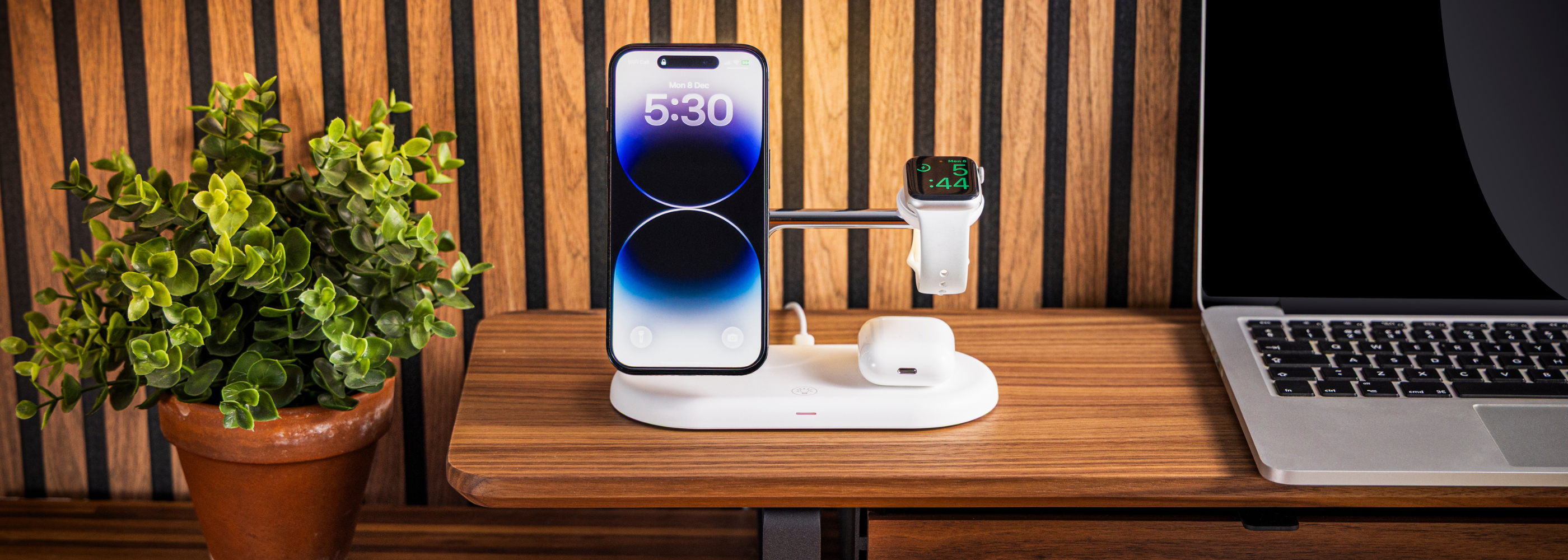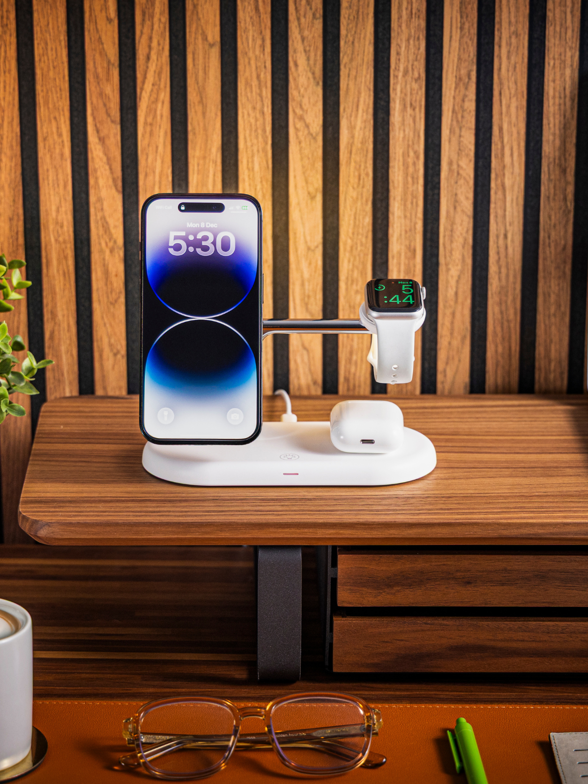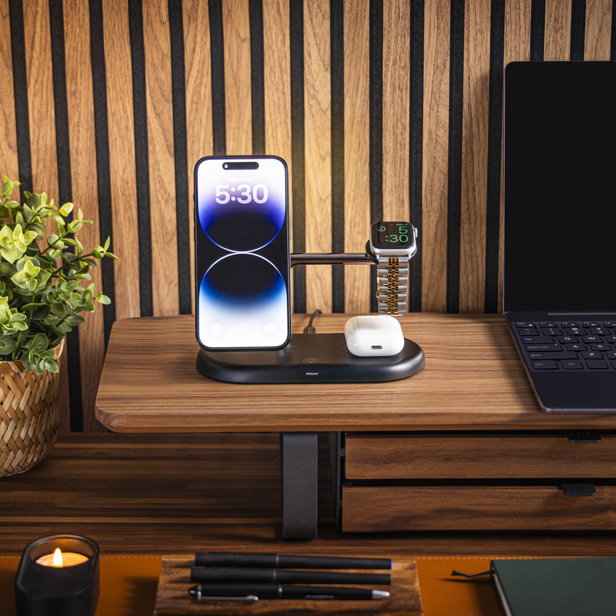Say goodbye to tangled cables and messy desks. The 3-in-1 Wireless Charging Stand keeps your iPhone, Apple Watch, and AirPods charged together, fast and hassle-free.